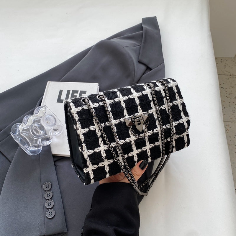 Women Fashion Casual Simple Stripe Chain Square Shoulder Bag