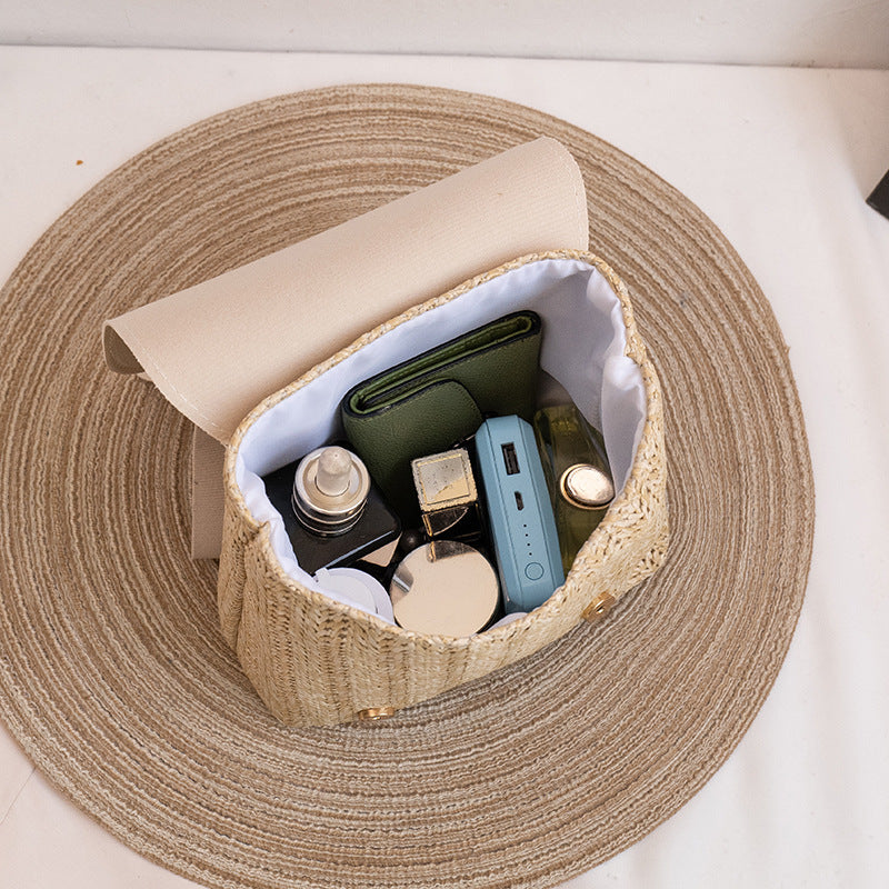 Women Fashion Simple Vacation Beach Large Capacity Straw Woven Magnetic Button Flap Backpack