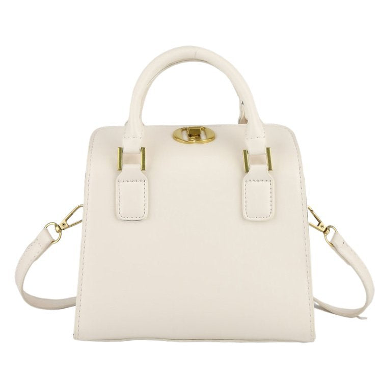 Women Fashion Solid Color Square PU Handle Shoulder Bag