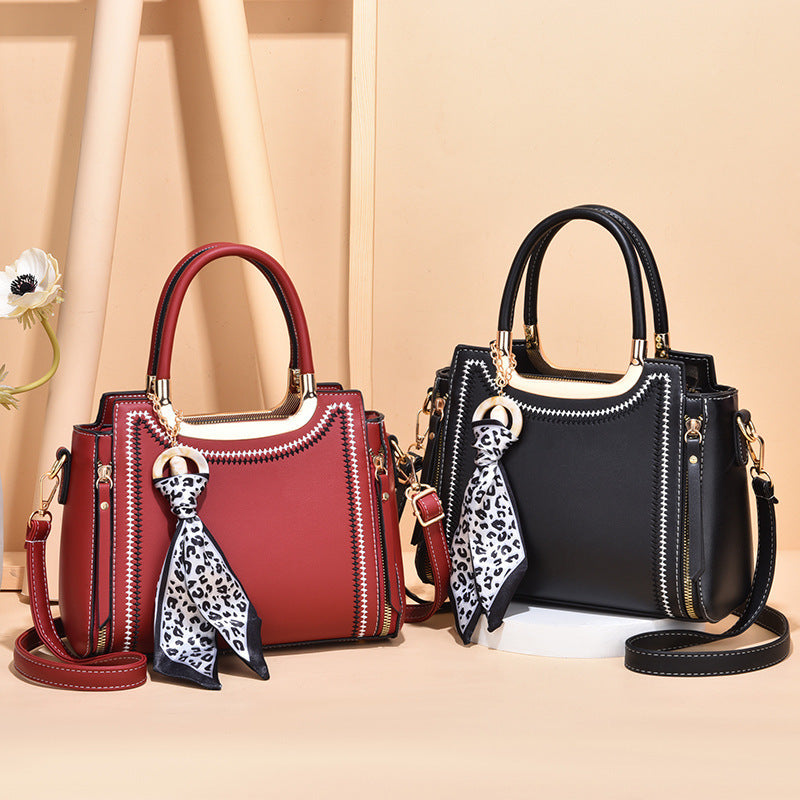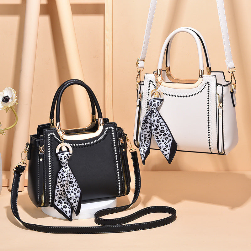 Women Fashionable Large Capacity Silk Scarf Decorative Zipper PU Handle Shoulder Bag