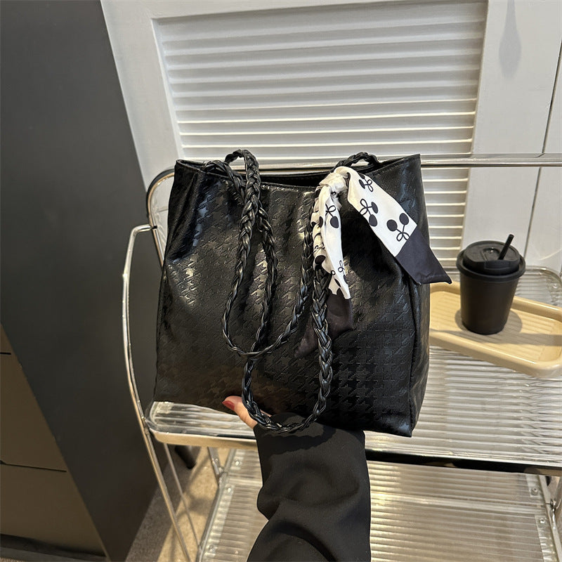 Women Fashionable Large Capacity Silk Scarf Handle Decorative PU Tote Bag