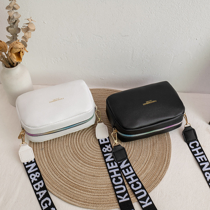 Women Fashionable Simple Solid Color Square Letter Wide Shoulder Strap Crossbody Bag
