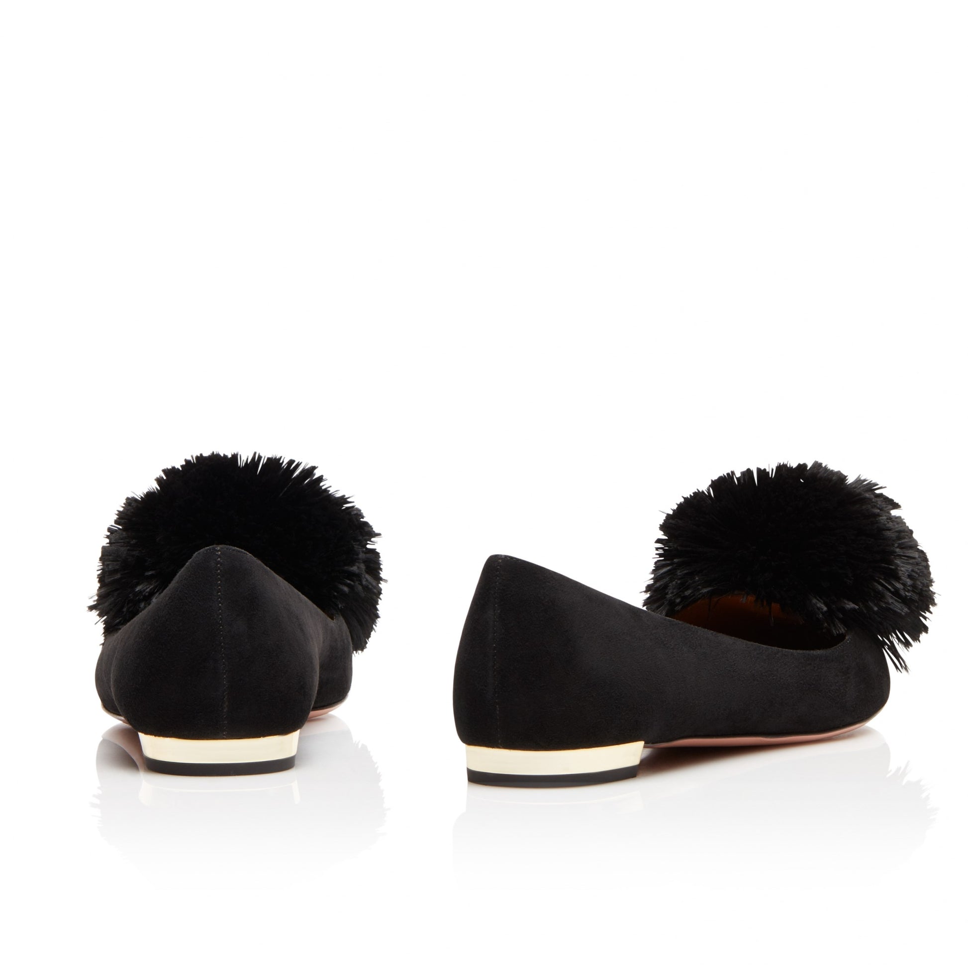 Black Cute Pom Pom Shoes Vegan Suede Pointy Toe Casual Flats