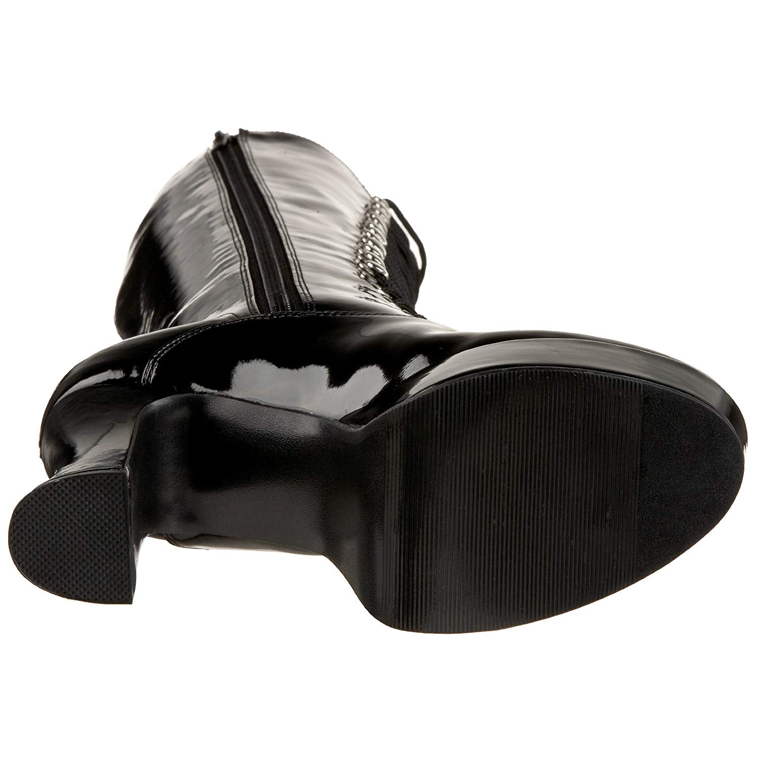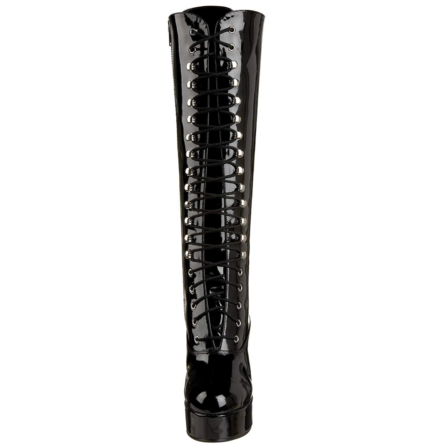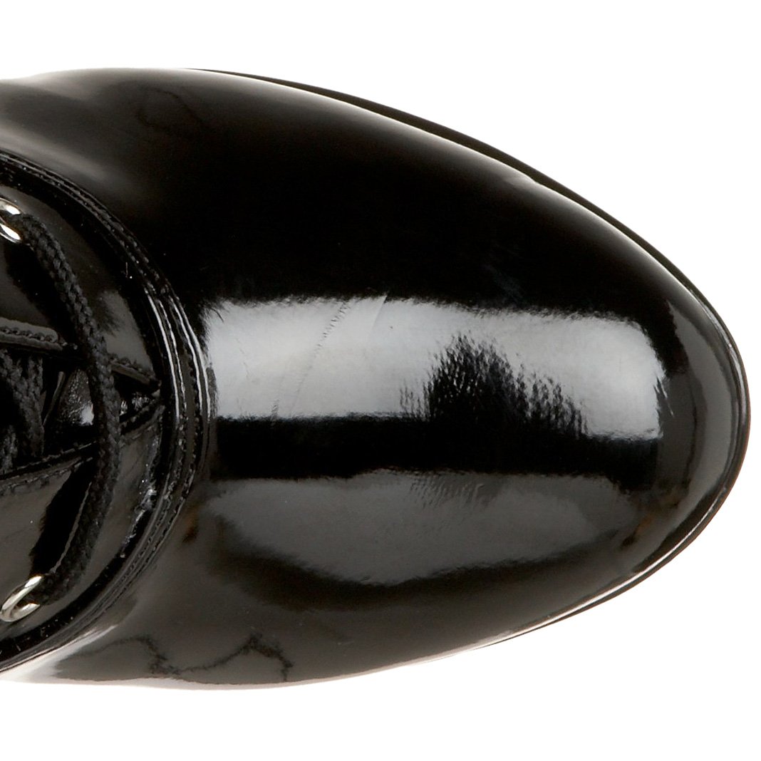 Vintage Black Patent Leather Lace-Up Knee High Boots with Platform