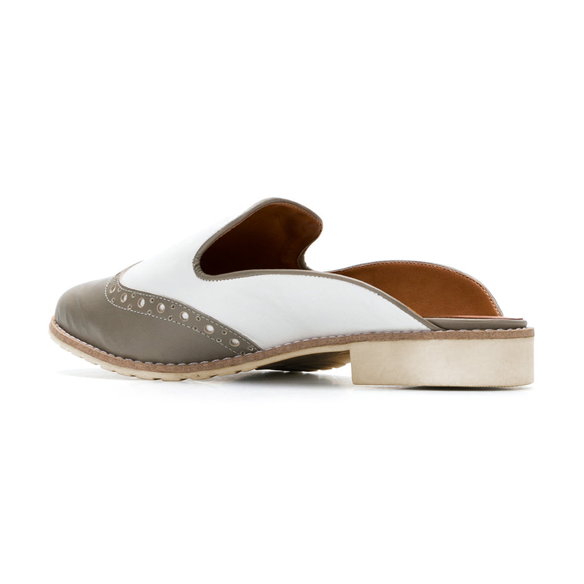 FSJ Khaki Round Toe Mule Loafers Low Heel Wingtip Shoes for Women