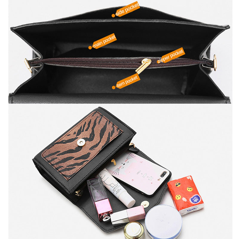 Women Vintage Flap Buckle Design Zebra Pattern PU Crossbody Bag