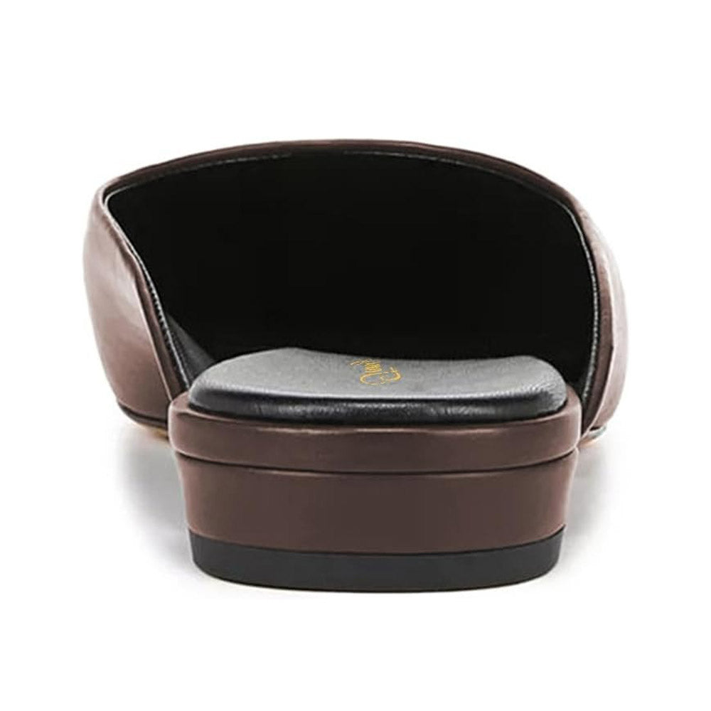 Women's Brown Vegan Leather Pointed Toe Casual Flat Mules