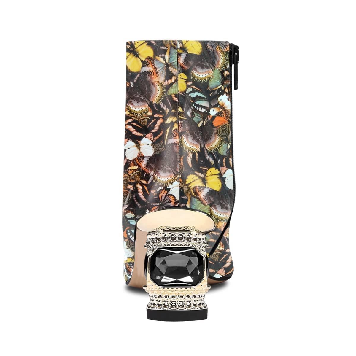 Women's Butterfly Print Closed Toe Decorative Heel Ankle Boots