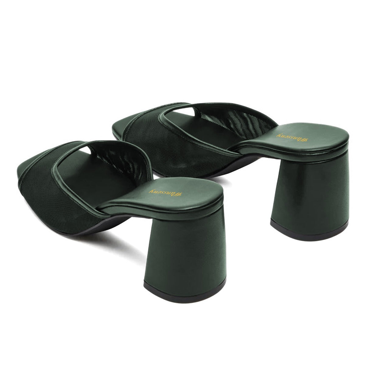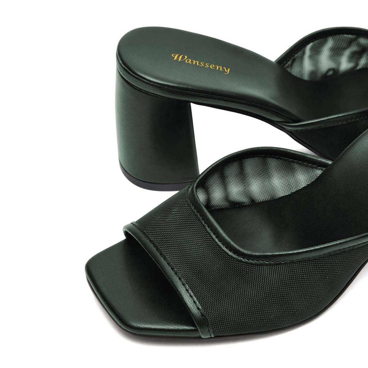 Women's Classic Dark Green Open Square Toe Mesh Mule Heels