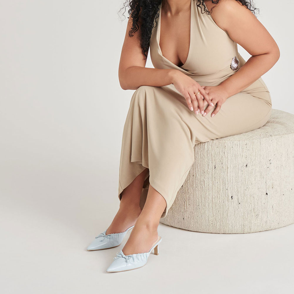 Women's Light Blue Pointed Toe Bow Decor Elegant Mule Heels