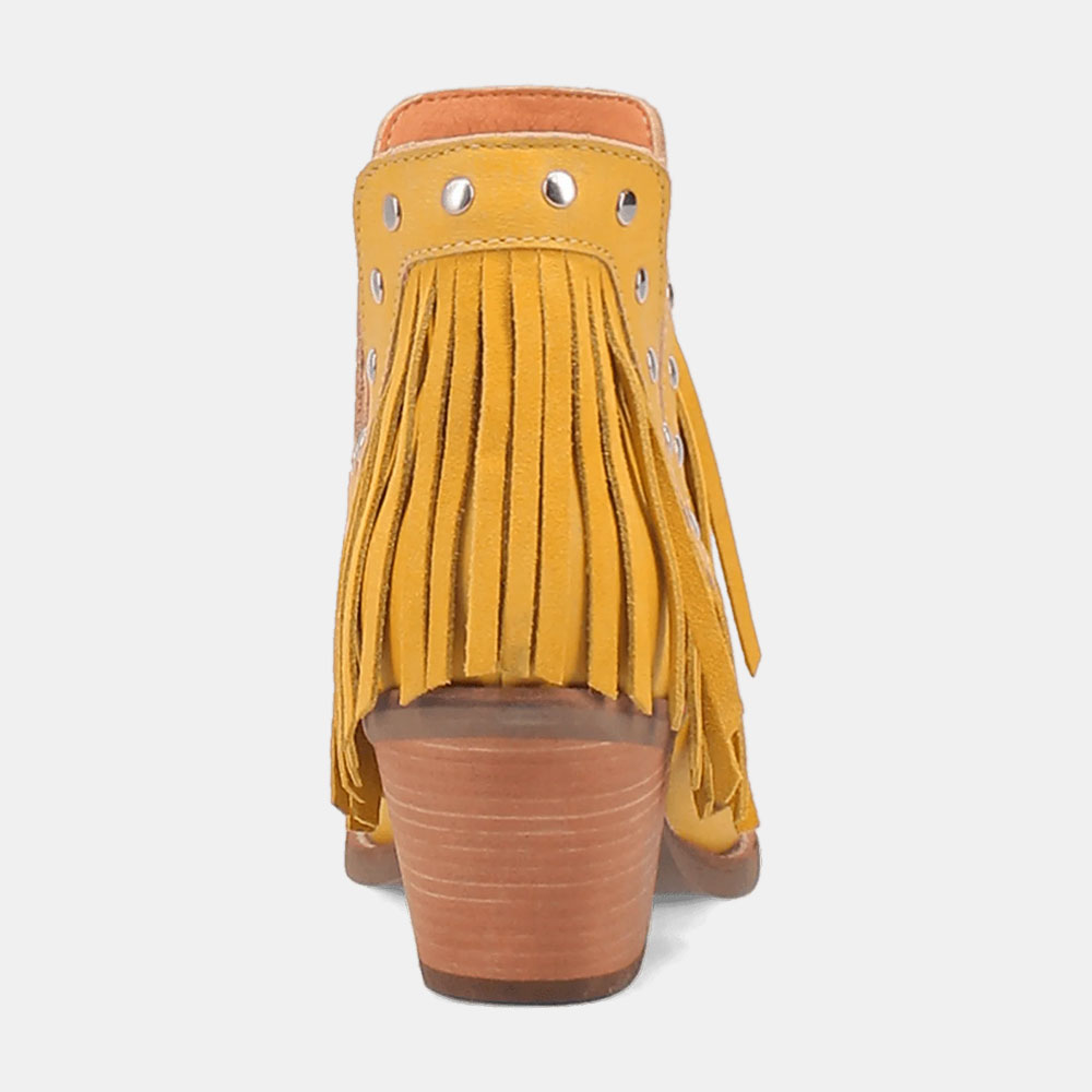 Yellow Fringe Snip Toe Studded Chunky Heel Short Boots for Women